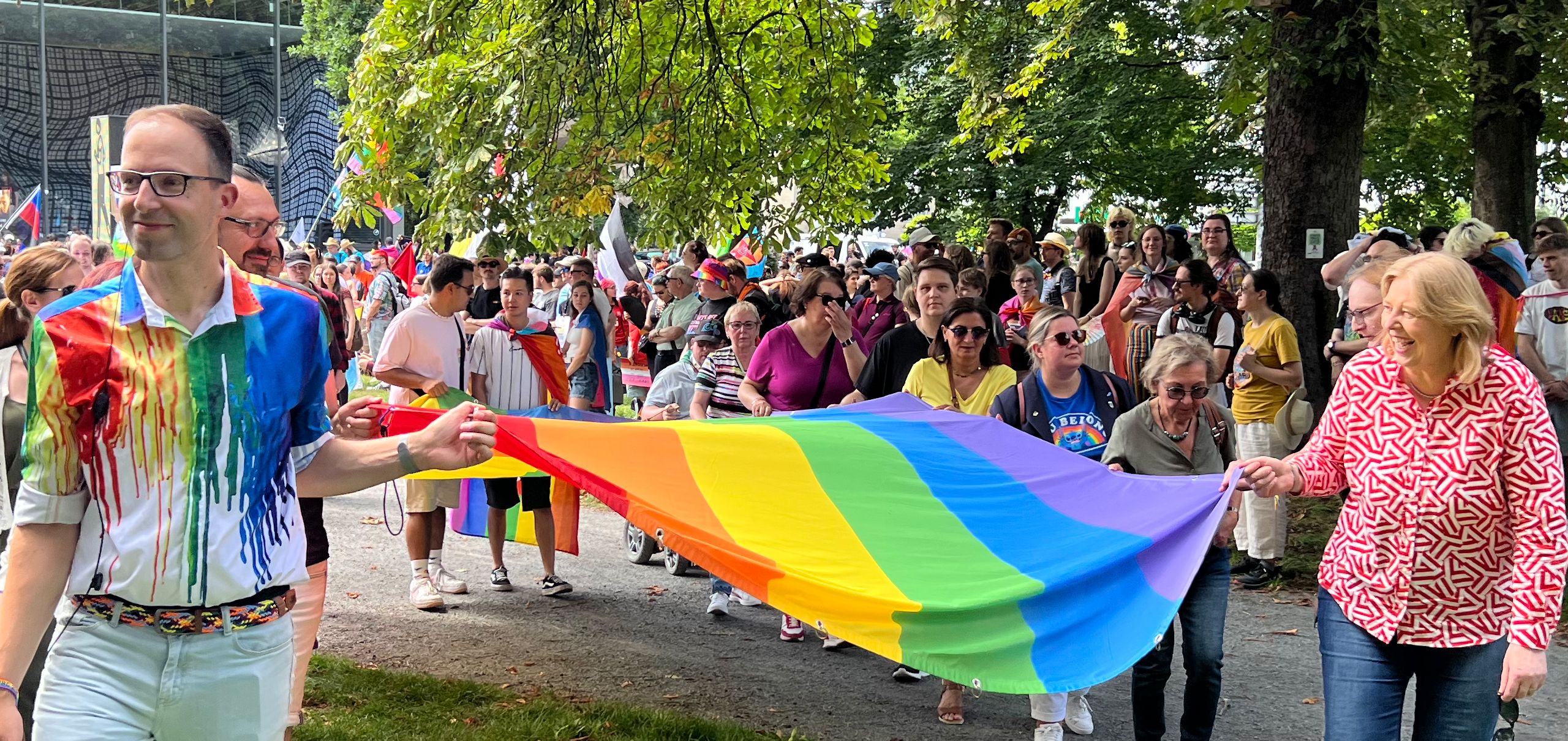 Im Rahmen des CSD werden traditionell in der Königstraße die Fahnenmasten mit Regenbogen-, Trans- und Interflaggen behangen. In diesem Jahr wird die Stadt Duisburg jedoch neue Fahnenmasten aufstellen, so dass die alten Flaggen nicht mehr aufgehängt werden können.